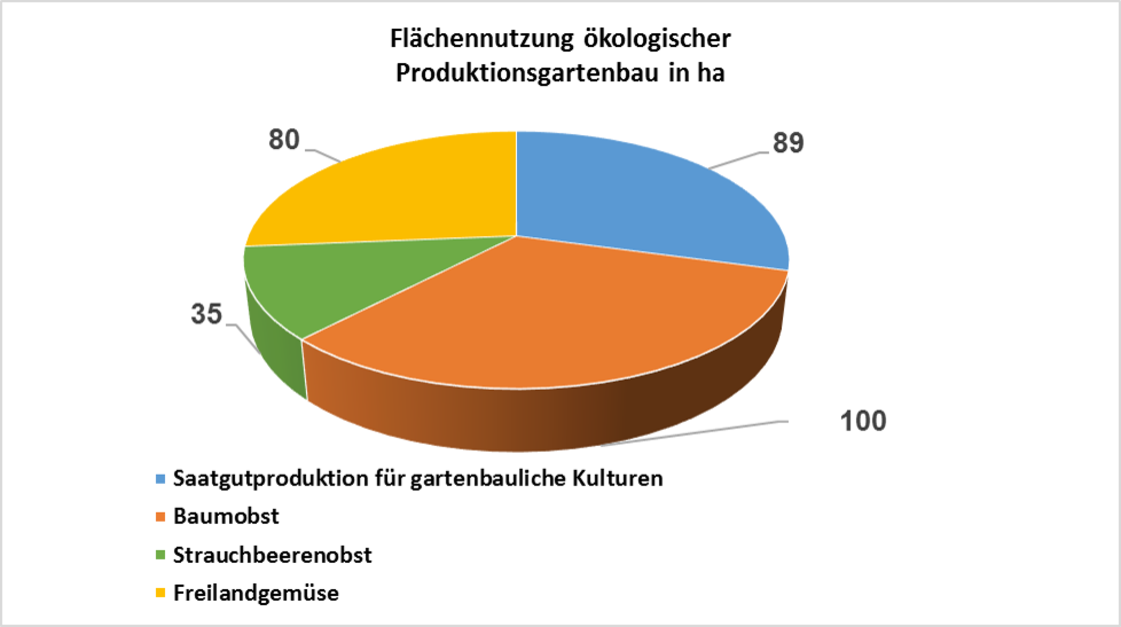 Die gartenbaulich genutzte Fläche umfasst gegenwärtig ca. 5.000 ha. Davon werden ca. 3.000 ha von Gartenbaubetrieben bewirtschaftet und 2.000 ha in landwirtschaftlichen Betrieben.